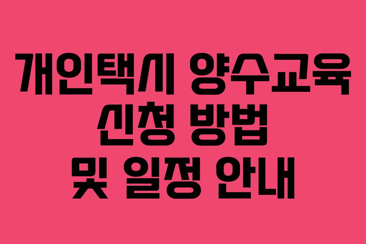 개인택시 양수교육은 개인택시 면허를 양수하고자 하는 분들에게 필수적인 과정입니다. 이 교육은 3년 유효기간을 가지며, 필요한 요건과 신청 방법을 자세히 알아보겠습니다.