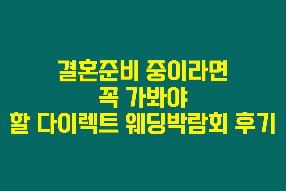 결혼준비를 시작한 예비 부부 여러분, 웨딩박람회가 어떤 경험인지 궁금하지 않으세요? 특히 다이렉트 웨딩박람회는 그런 고민을 덜어줄 완벽한 기회죠. 제가 최근에 다녀온 후기를 통해 어떻게 준비하면 좋을지 알려드릴게요. 아래를 읽어보시면 결혼준비의 중요한 힌트를 얻을 수 있을 거예요!