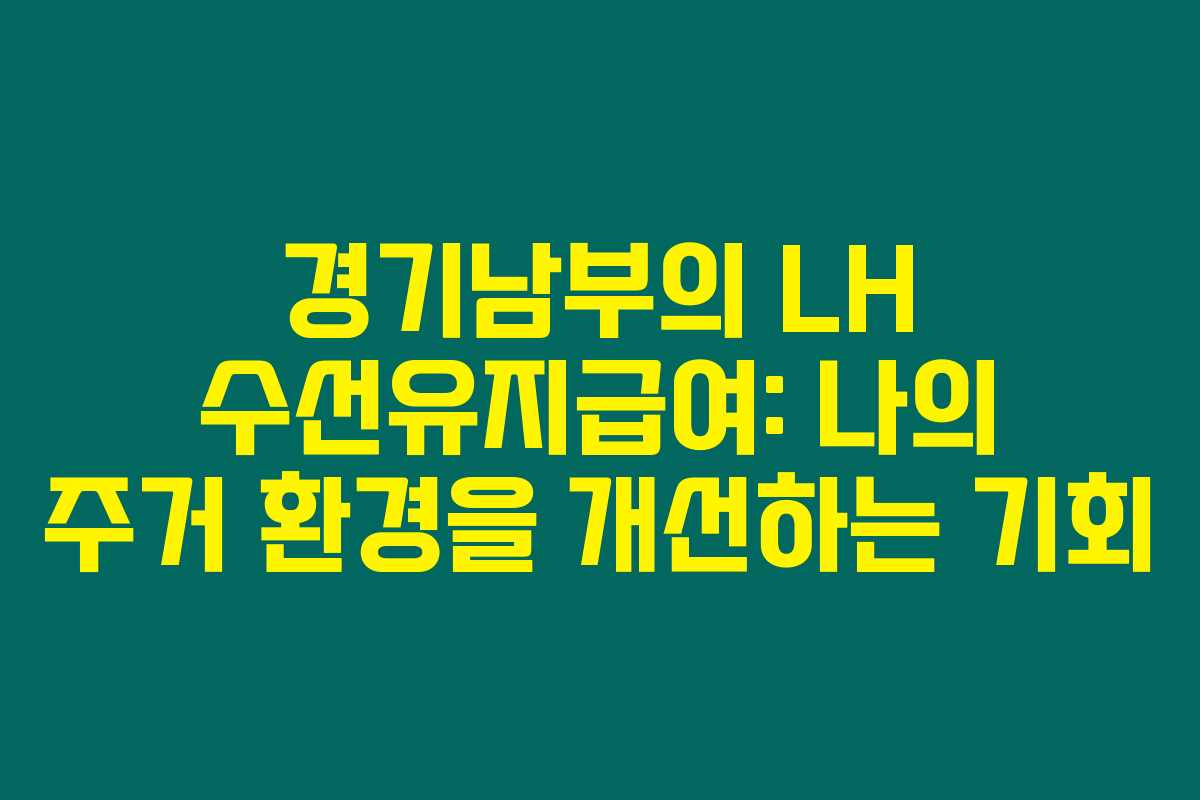 제가 직접 경험해본 결과로는, LH 수선유지급여는 자가 주택에 거주하는 주거급여 수급자에게 큰 도움이 되는 제도입니다. 이 제도는 주거환경을 개선하고 삶의 질을 높이기 위해 마련된 정책으로, 경기도의 17개 지자체에서 적극적으로 추진하고 있습니다. 아래를 읽어보시면 이 지원의 내용과 신청 방법, 지원 대상을 자세히 알 수 있습니다.
