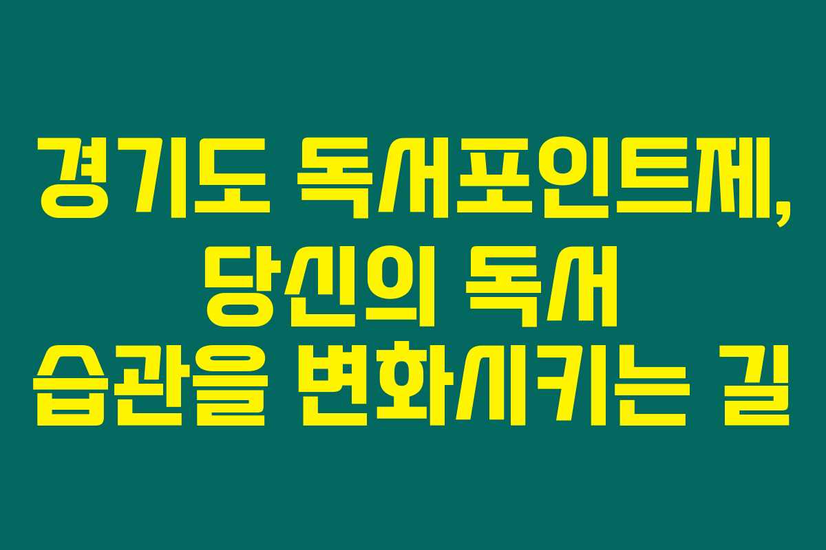 경기도 독서포인트제, 당신의 독서 습관을 변화시키는 길