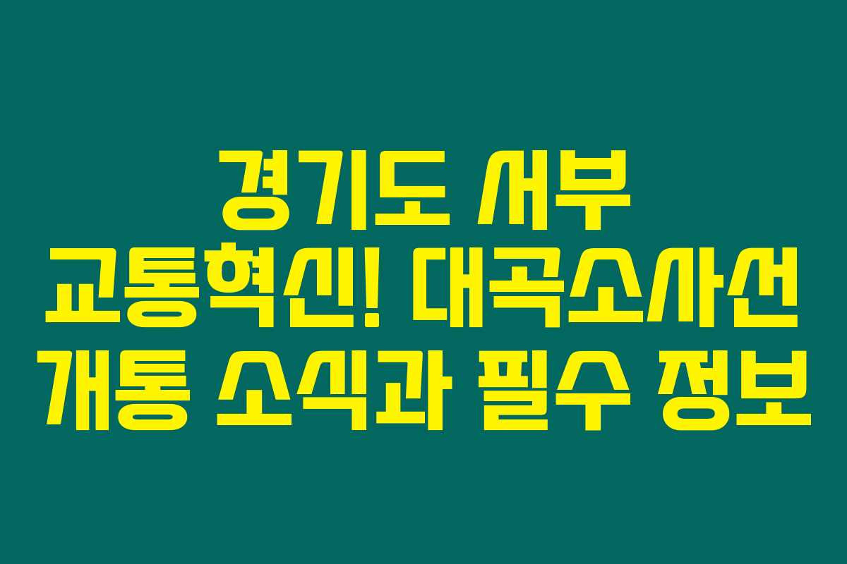 대곡소사선의 개통으로 인해 경기도 서부 지역의 교통환경이 획기적으로 변화할 것으로 기대됩니다. 많은 분들이 이 노선을 이용하여 보다 나은 교통편의성을 경험하게 되길 바라요.