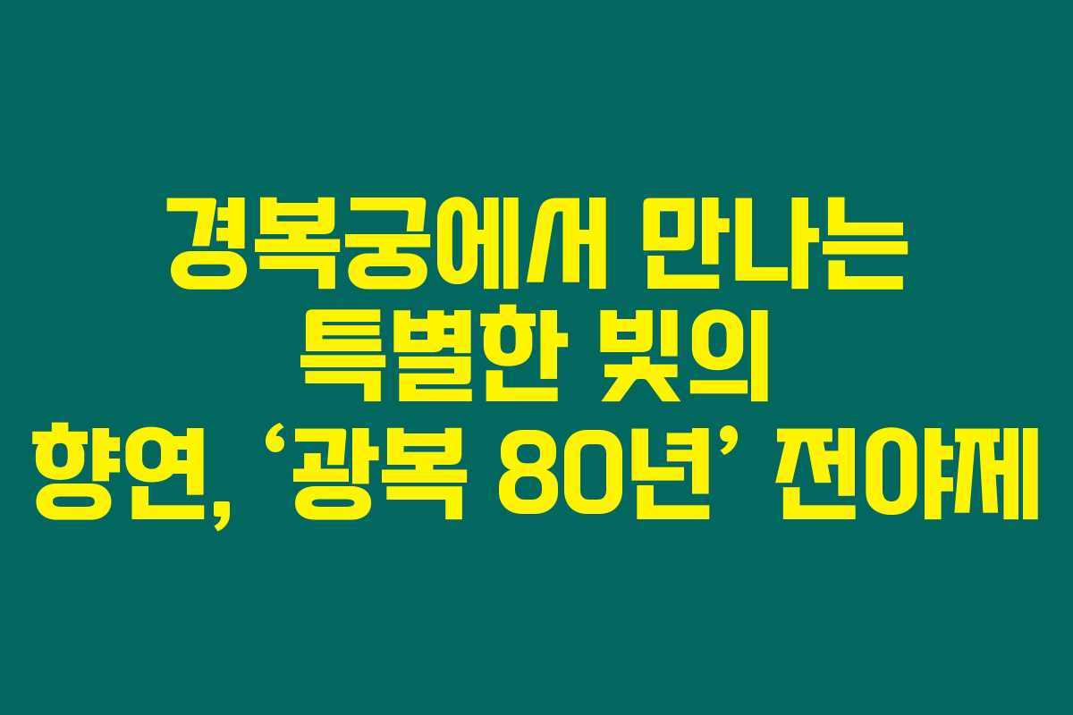 2025년은 대한민국 광복 80주년이 되는 뜻깊은 해입니다. 특별한 문화 행사, 광복 80년 전야제가 경복궁에서 열리는데요. 역사적 의의를 지닌 공간에서 펼쳐질 이 행사는 과거와 현재, 그리고 미래를 잇는 특별한 경험이 될 것입니다. 아래를 읽어보시면 한여름의 밤, 우리 역사를 함께 기념하고 소통하는 축제가 어떻게 진행될지를 알 수 있습니다.