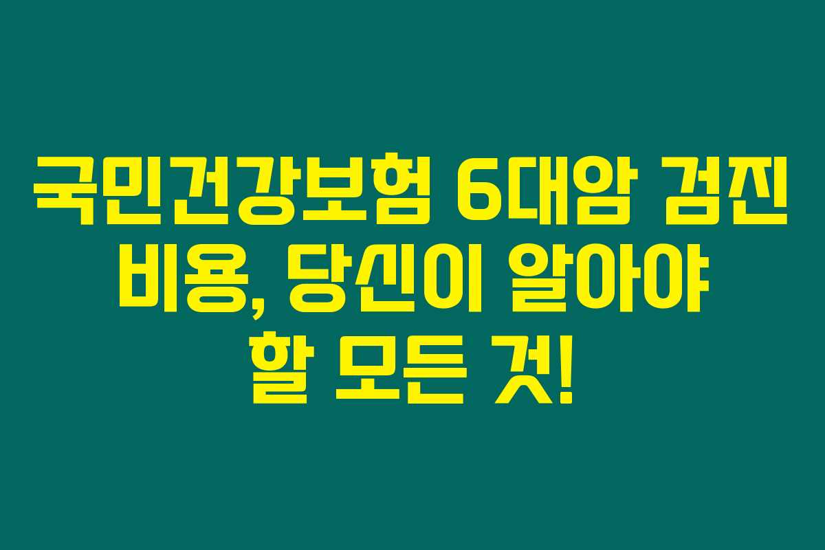 국민건강보험에서 시행하는 6대암 검진은 우리의 건강과 생명을 지키는 중요한 수단입니다. 아래를 읽어보시면, 각 암 검진의 비용 및 혜택에 대해 자세히 알게 되실 거에요. 국가에서 지원이 많은 만큼, 본인이 어떤 비용을 부담해야 하는지 알아보고, 주기적으로 검진을 받아 건강을 유지해요!