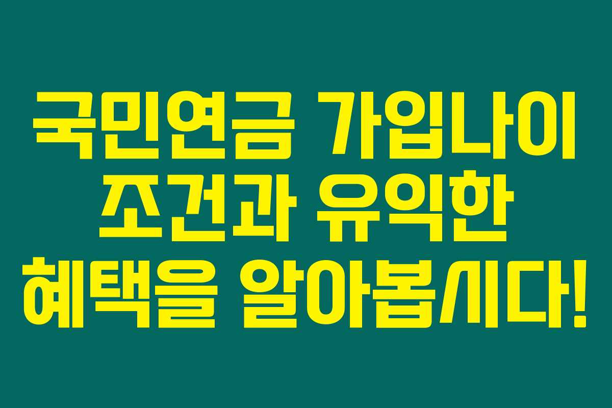 1. 국민연금 가입 가능 나이와 조건