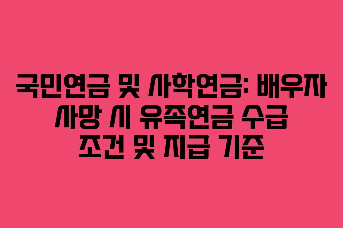 배우자의 갑작스러운 사망은 큰 슬픔을 가져오며, 동시에 경제적인 어려움도 동반할 수 있습니다. 이러한 상황에서 국민연금과 사학연금의 유족연금 제도를 이해하면, 남겨진 가족의 생계와 안정을 도모하는 데 큰 도움이 됩니다. 이번 글에서는 유족연금의 수급 조건, 지급 기준, 신청 절차, 그리고 추가적인 지원 제도에 대해 자세히 알아보겠습니다.