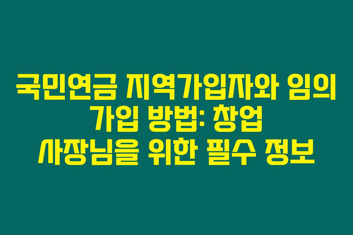 임의 가입을 하려면 특정 조건을 충족해야 하며, 기초생활 수급자나 퇴직연금 수급자가 그 예입니다. 본인의 자격을 반드시 체크해 보세요.