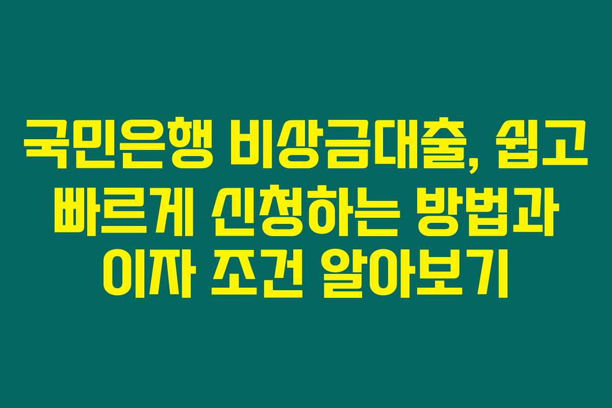 급한 자금이 필요할 때 국민은행의 비상금대출은 작은 금액으로도 큰 도움을 줍니다. 만약 비상금대출 신청방법이나 조건이 궁금하시다면, 아래를 읽어보시면 필요 정보를 모두 얻을 수 있을 거예요. 누구나 쉽게 접근할 수 있도록 설명할 테니, 한번 확인해보세요!