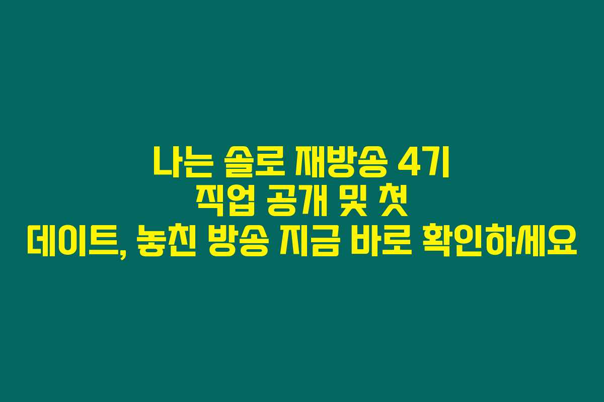 나는 솔로 재방송 4기 직업 공개 및 첫 데이트가 궁금하신가요? 이 방송을 놓쳤다면 몇 가지 정보를 꼭 확인해 보세요. 솔로 남녀가 사랑을 찾기 위해 어떻게 고군분투하는지 시청각적으로 느낄 수 있는 기회일지도 모르거든요.