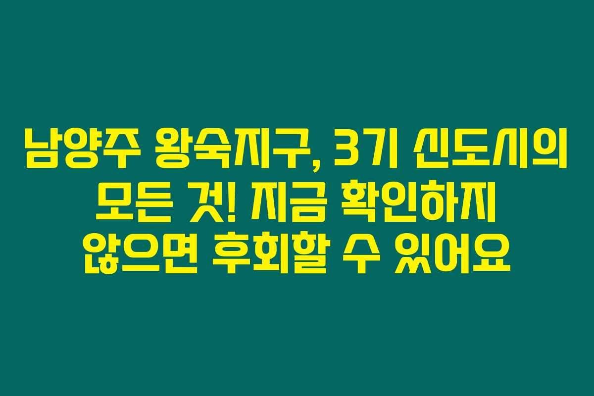 남양주 왕숙지구는 3기 신도시 중 하나로, 최근에 많은 관심을 받고 있는 지역이지요. 혹시 남양주 왕숙지구에 대한 정보를 찾고 계신가요? 개발 계획과 분양 시기, 청약 일정 등의 정보를 아래에서 자세히 확인해 보시면 정말 좋을 것 같습니다.