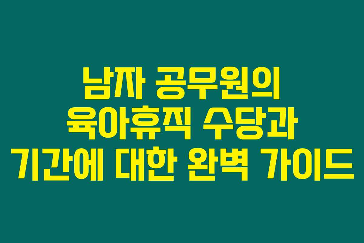 저는 남자 공무원의 육아휴직 관련 정보를 직접 조사하고, 경험해본 결과 이 글을 통해 다룰 내용을 정리하였습니다. 이 글에서는 남자 공무원의 육아휴직 수당, 기간 및 조건에 대해 자세히 알아보겠습니다. 과연 육아휴직을 통해 어떻게 가족과의 소중한 시간을 가질 수 있는지 확인해 보세요.