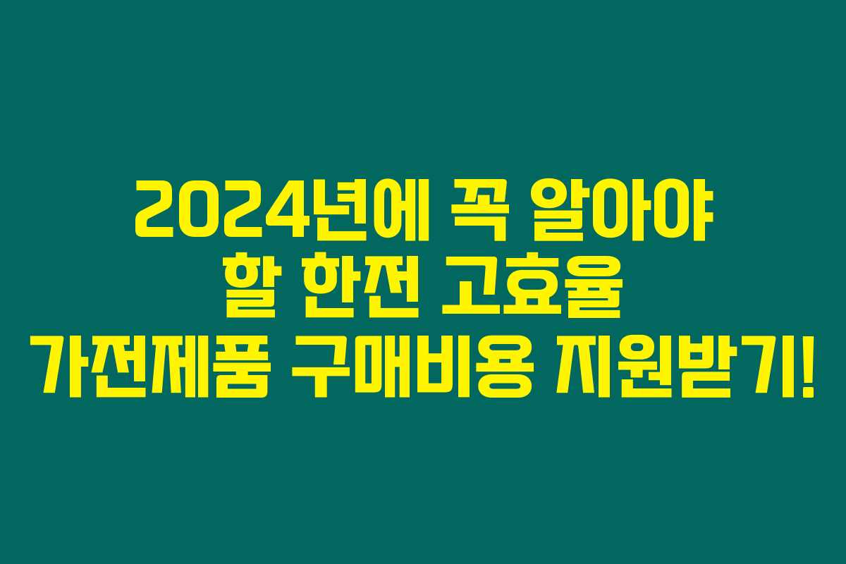 마지막으로, 고효율 가전제품을 구매하여 전기요금을 절약하고 환경에도 기여할 수 있는 기회니까 적극 활용해보세요. 2024년 한전의 고효율 가전제품 구매비용 지원사업을 통해 더 나은 에너지 복지를 누리시길 바랍니다.