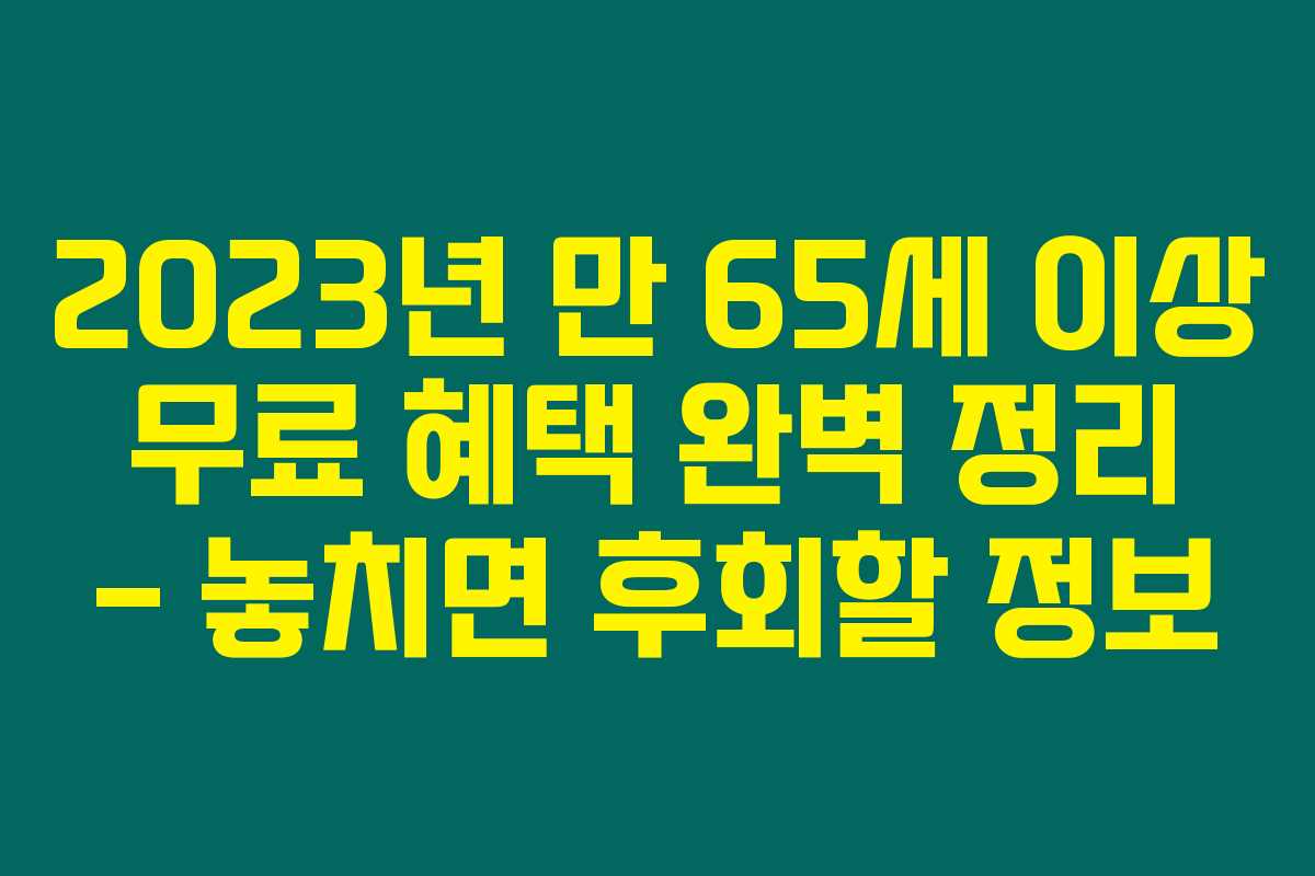 2023년 만 65세 이상 무료 혜택 완벽 정리 – 놓치면 후회할 정보