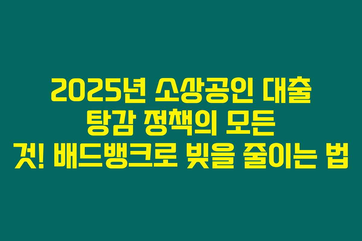 제가 리서치한 바로는, 2025년에 정부가 시행하는 소상공인 대출 탕감 정책은 많은 소상공인들에게 희망이 될 것입니다. 특히 코로나19로 인해 어려움을 겪은 많은 사업자들은 이제 기회를 잡을 수 있는 중요한 시점에 있습니다. 아래를 읽어보시면 소상공인이 배드뱅크를 통해 대출 탕감을 받는 방법에 대해 자세히 알아볼 수 있습니다.