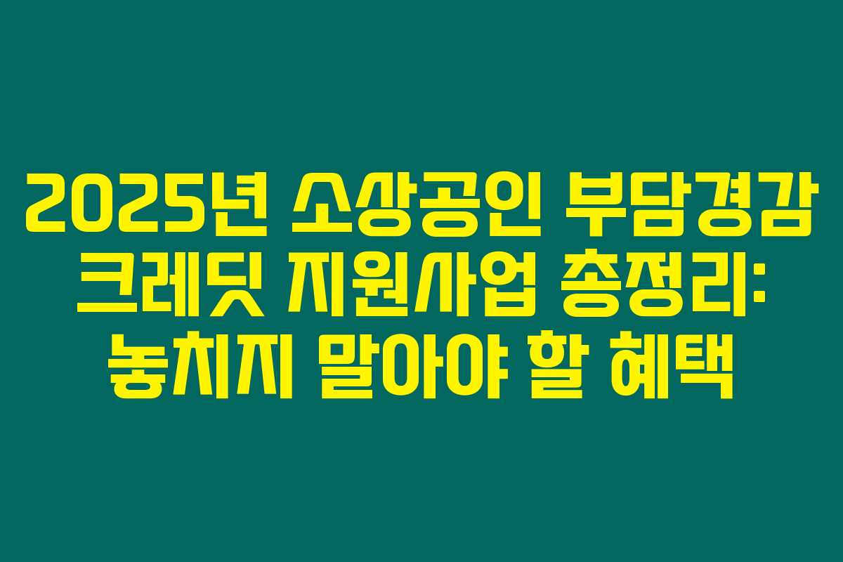 2025년 소상공인 부담경감 크레딧 지원사업은 정말 좋은 기회라는 걸 알게 되었어요. 잊지 말고 혜택을 누리세요!