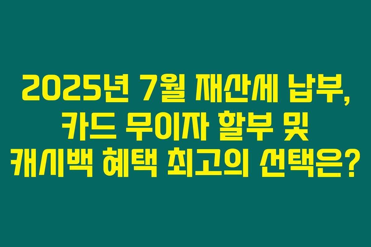 2025년 7월 재산세 납부를 고려하고 있다면, 아래를 읽어보시면 똑똑하게 혜택을 누릴 수 있는 방법이 보일 거에요.