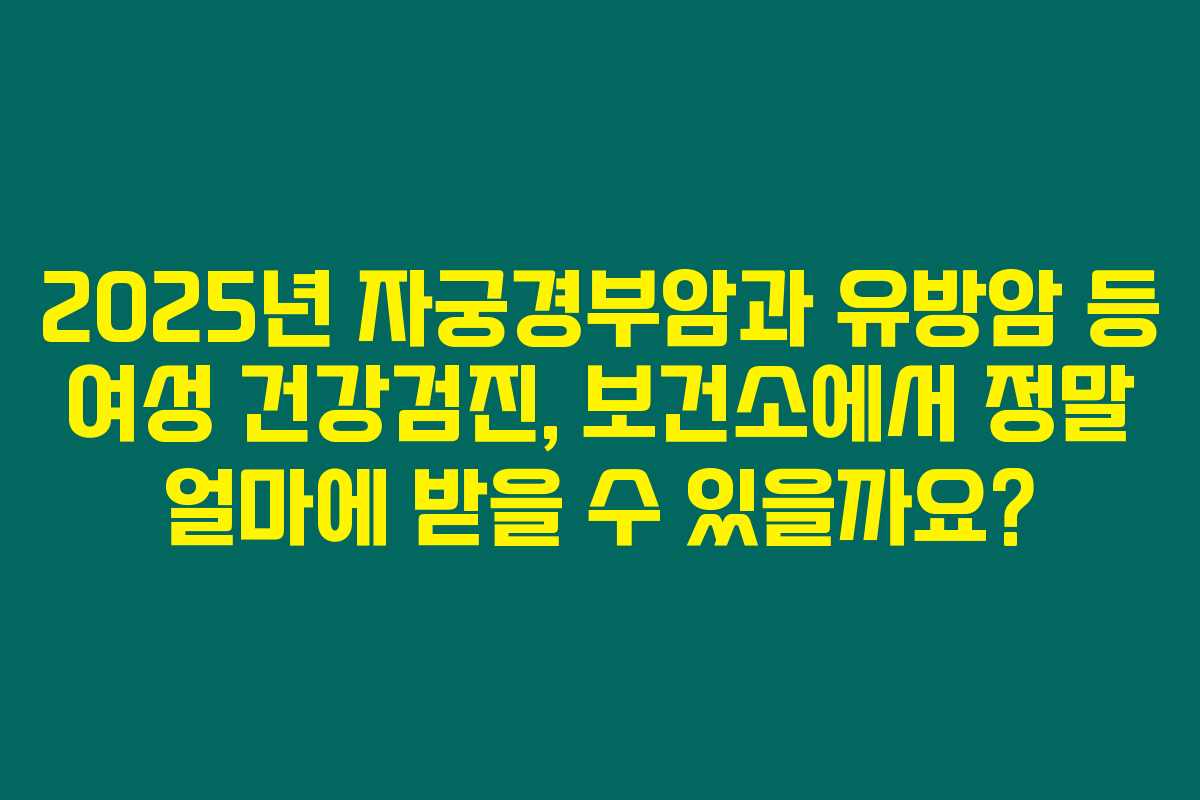 2025년 자궁경부암과 유방암 등 여성 건강검진, 보건소에서 정말 얼마에 받을 수 있을까요?