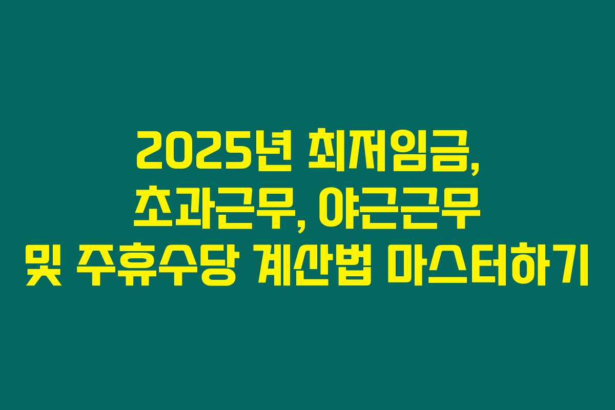 제가 직접 경험해본 결과로는, 2025년 최저임금 및 관련 급여 계산 방식은 직장인과 사업주 둘 모두에게 매우 중요한 주제입니다. 여기서 저는 2025년 최저임금, 초과근무, 야근근무 및 주휴수당 계산법에 대해 쉽고 자세히 설명해 드릴게요.