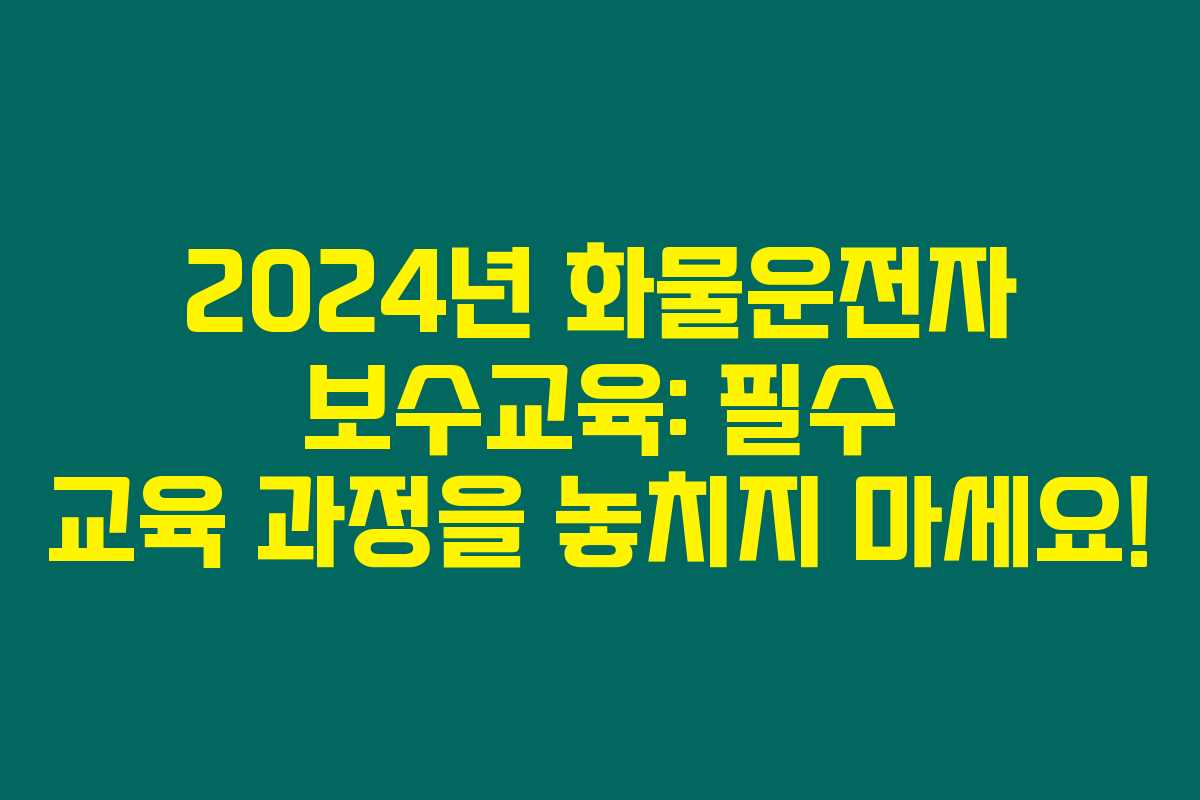 제가 알아본 바로는, 2024년 화물운전자 보수교육은 모든 화물 운전자가 반드시 이수해야 하는 중요한 교육입니다. 새로운 교통법규 및 안전 기준에 대해 배우고 이를 통해 사고를 예방하는 데 큰 도움이 된답니다. 아래를 읽어보시면, 이 교육의 중요성과 신청 방법에 대한 자세한 내용을 확인하실 수 있습니다.