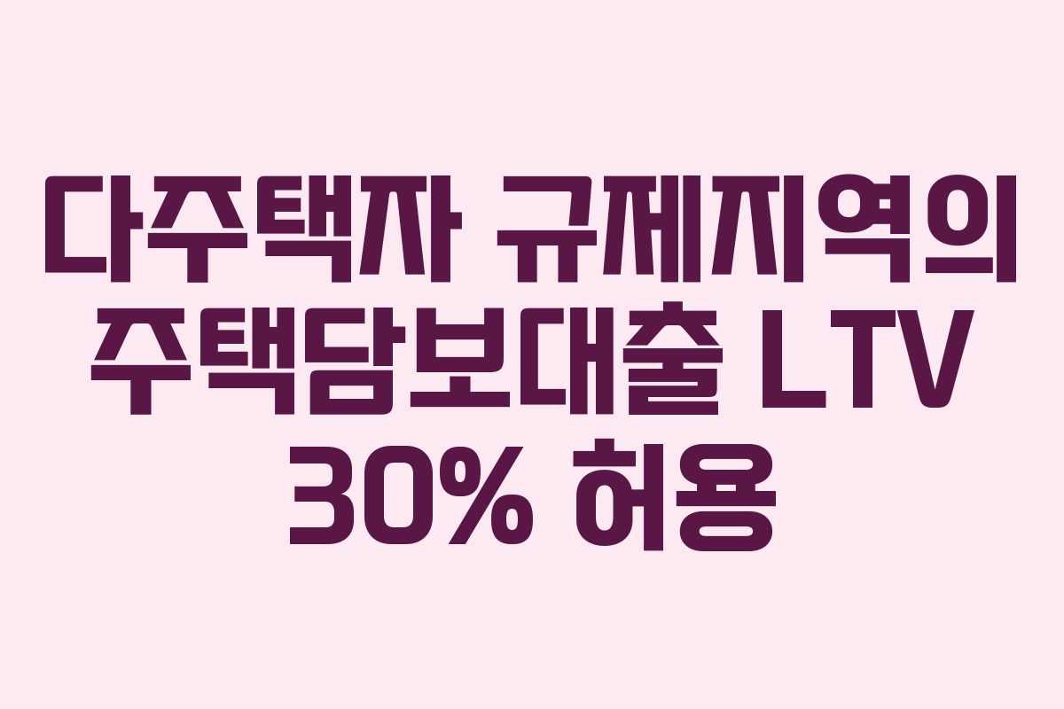 최근 다주택자에 대한 주택담보대출 규제가 완화되어, 이들이 규제지역에서도 LTV 30%를 적용받아 대출을 받을 수 있게 되었습니다. 이 변화는 주택 시장에 큰 영향을 미칠 것으로 예상됩니다.