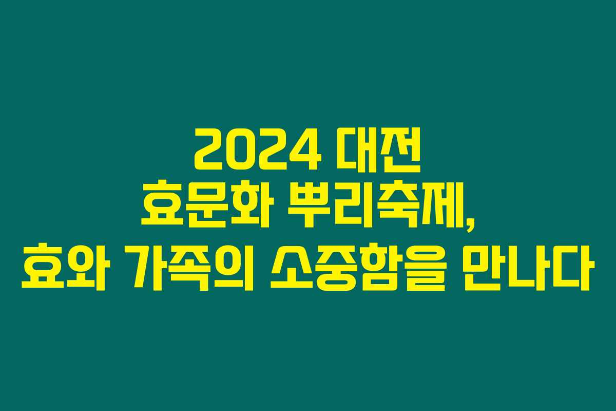 축제의 기간은 2024년 10월 11일부터 10월 13일까지, 총 3일간 대전 뿌리공원에서 진행됩니다. 축제의 주제는 ‘효와 가족의 소중함’이며, 다양한 프로그램과 콘텐츠를 통해 가족 간의 유대감을 더욱 깊게 체험할 수 있습니다.