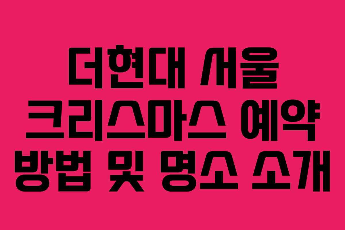 서울에서 크리스마스를 맞이하는 특별한 명소로 더현대 서울 크리스마스 빌리지가 다시금 주목받고 있습니다. 작년에도 많은 인기를 끌었던 이곳은 올해도 많은 방문객들이 기대하고 있습니다. 이번 포스트에서는 더현대 서울 크리스마스 빌리지의 예약 방법과 주요 특징을 소개하겠습니다.
