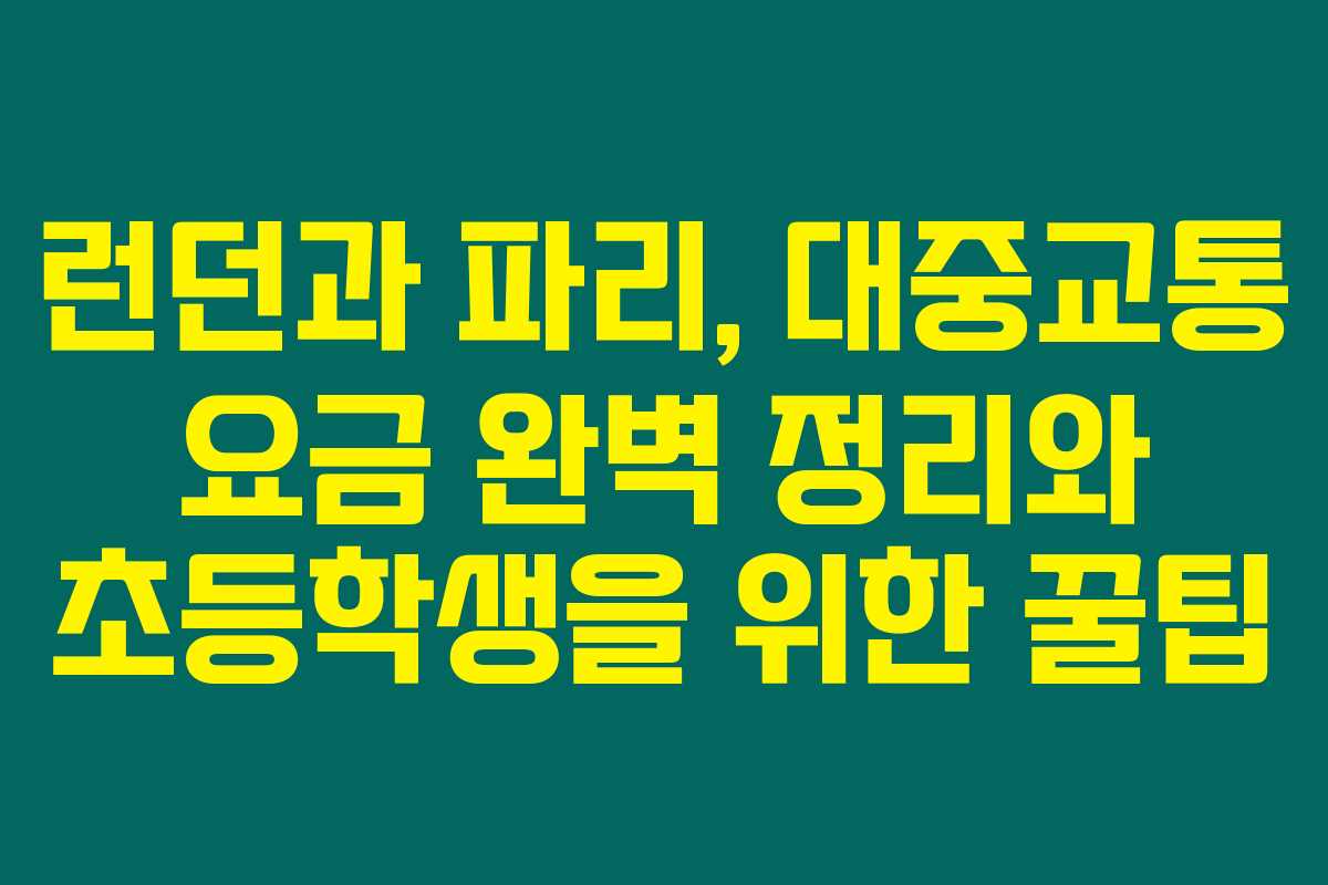 여행 중 대중교통을 이용하면서 요금 문제로 고민하신 적 있으신가요? 특히 초등학생 자녀를 동반할 경우 대중교통 요금은 더욱 복잡할 수 있어요! 런던과 파리의 대중교통 요금 정보를 모아봤으니 아래를 읽어보시면 유용한 정보를 얻으실 수 있을 거예요.