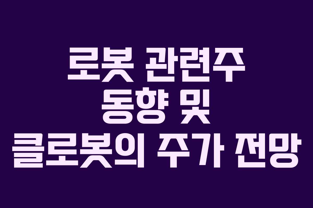 최근 로봇 관련주들이 활발한 움직임을 보이고 있습니다. 특히 대장주인 레인보우로보틱스가 상한가를 기록하면서 다른 로봇 관련 기업들의 주가도 긍정적인 반응을 보이고 있습니다. 이 글에서는 로봇 관련 주요 기업들과 클로봇의 전망에 대해 알아보겠습니다.