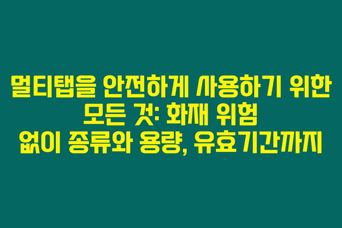 멀티탭은 우리의 스마트한 생활을 도와주는 중요한 요소입니다. 그러나 이를 잘못 사용하게 되면 심각한 위험을 초래할 수 있죠. 그러므로 멀티탭의 종류와 용량, 그리고 사용 유효기간에 대해 잘 알고 안전하게 사용해주세요. 안전한 전기 사용으로 화재의 위험 없이 편리한 생활을 누리시길 바랍니다!