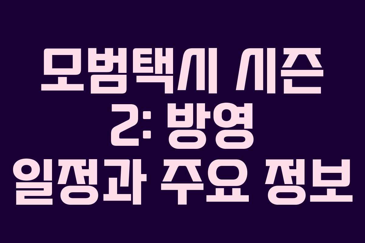모범택시 시즌 2: 방영 일정과 주요 정보