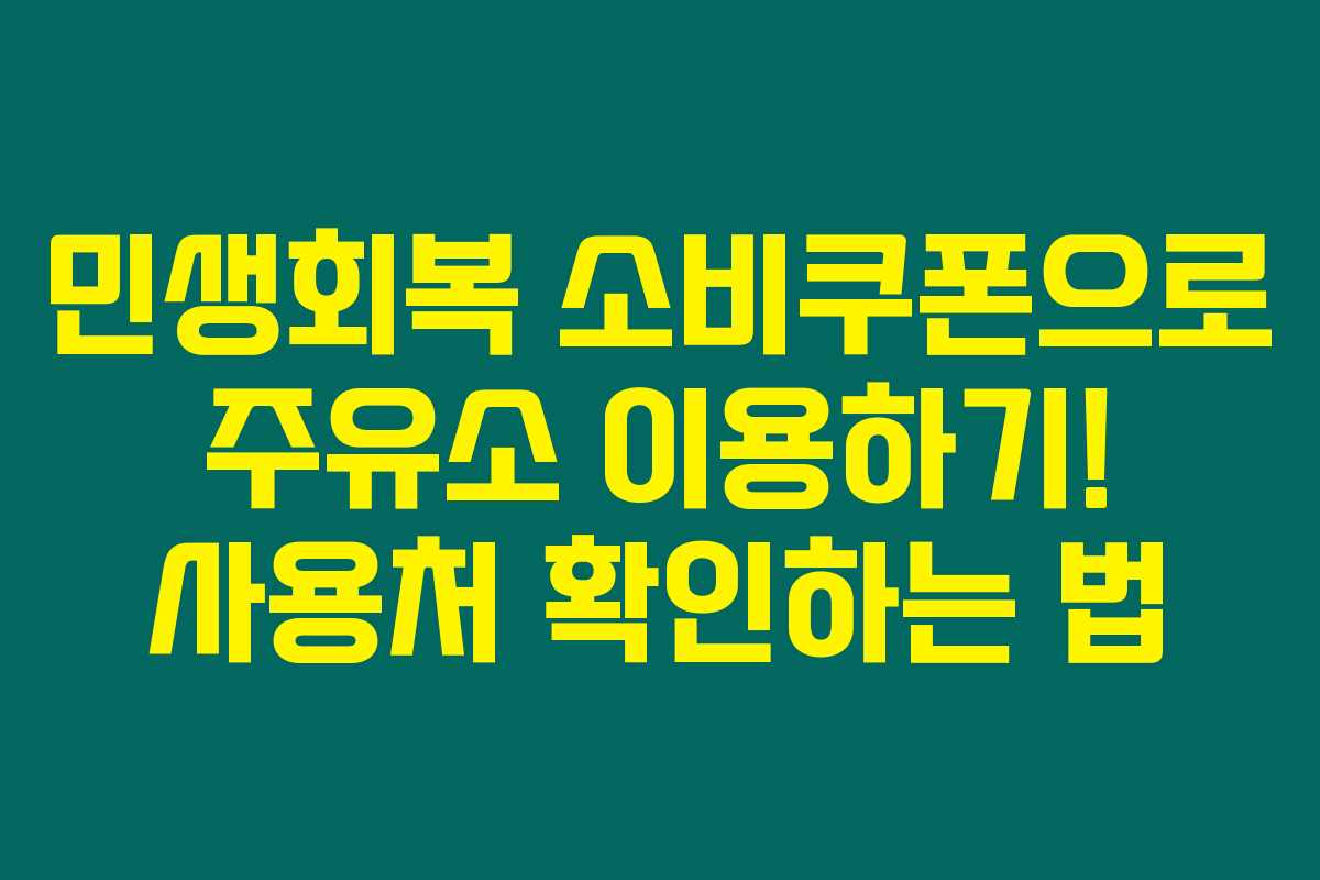 민생회복 소비쿠폰이 곧 지급되나요? 기대가 크겠어요! 그러나 소비쿠폰에 대한 궁금증도 많을 텐데요, 아래를 읽어보시면 민생회복 소비쿠폰의 주유소 사용처를 어떻게 확인할 수 있는지에 대한 유용한 정보를 드리게 될 겁니다. 특히, 주유소 사용처가 제한되어 있는 만큼, 가맹점을 빠르게 찾는 방법을 알아볼까요?