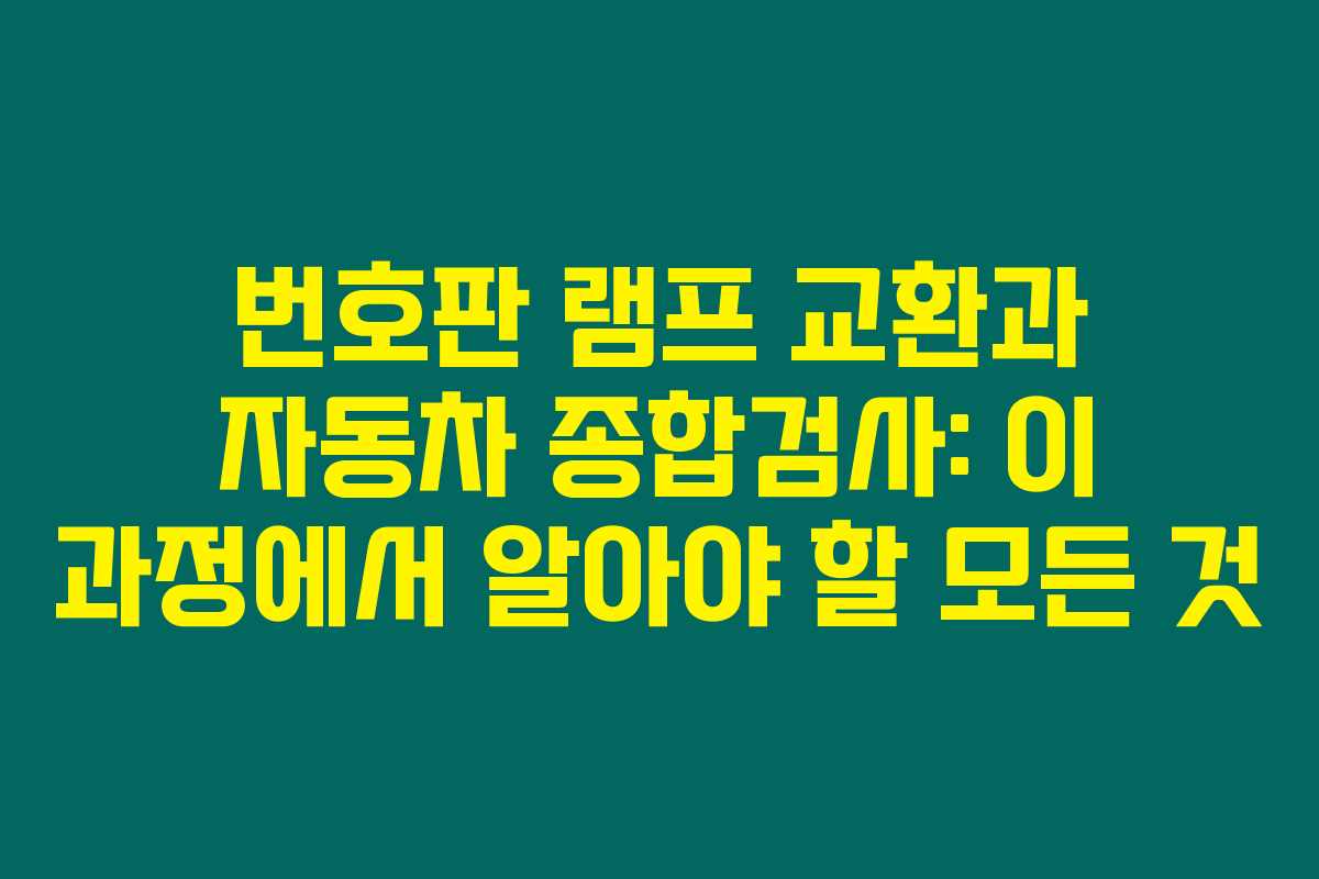 자동차를 소중히 다루고 싶으신가요? 그렇다면 아래 내용을 꼭 확인해보세요. 종합검사에 관한 모든 정보와 번호판 램프 교환 방법까지 자세히 설명해드릴게요.