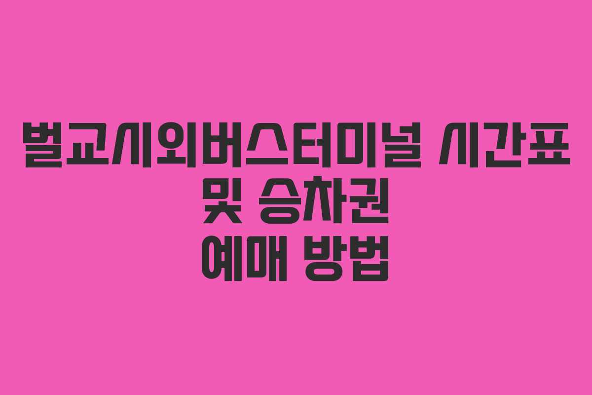 벌교시외버스터미널 시간표 확인 및 예매 방법