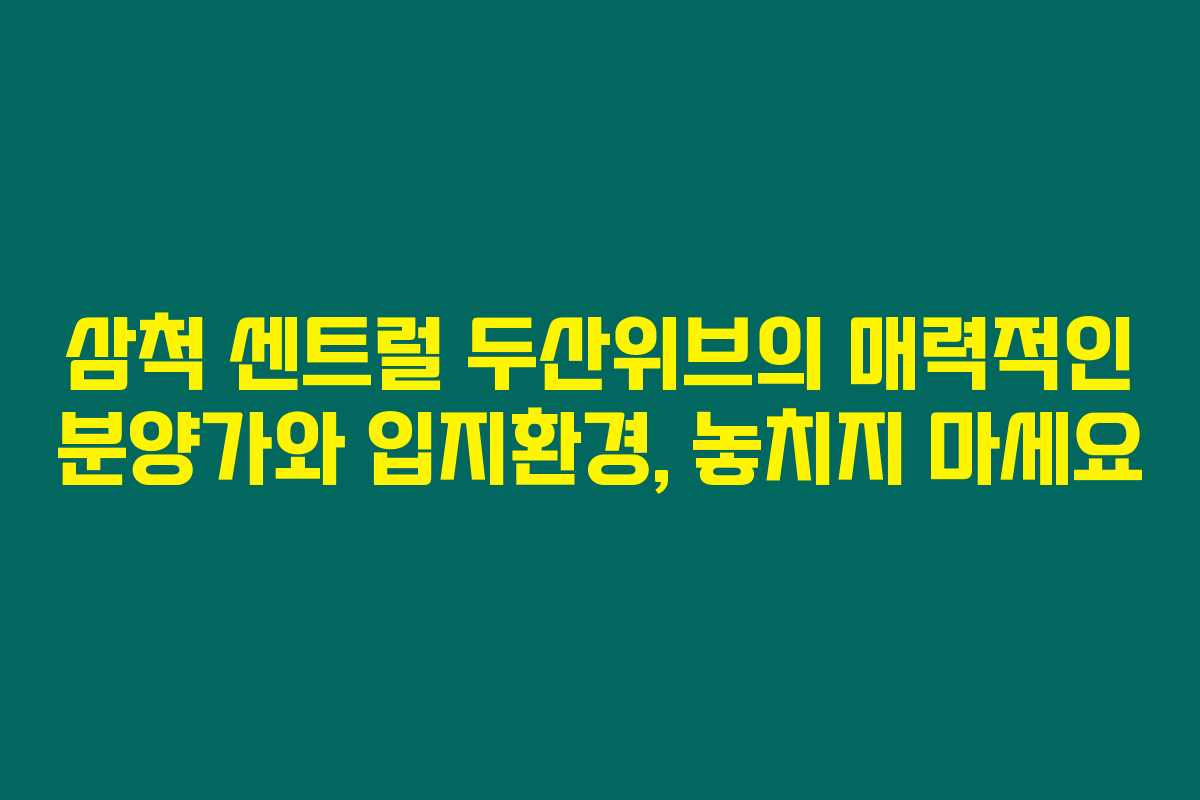 삼척 센트럴 두산위브의 매력적인 분양가와 입지환경, 놓치지 마세요