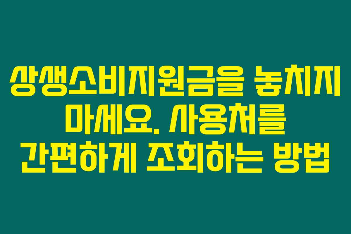 상생소비지원금을 받으신다면 그 사용처는 매우 중요하죠. 혹시 사용처가 궁금한 분 계신가요? 상생소비지원금은 특정 가맹점에서 쉽게 사용할 수 있어서 더욱 유용해요. 아래를 읽어보시면 상생소비지원금 사용처를 조회하는 방법에 대해 자세히 알려드릴게요.