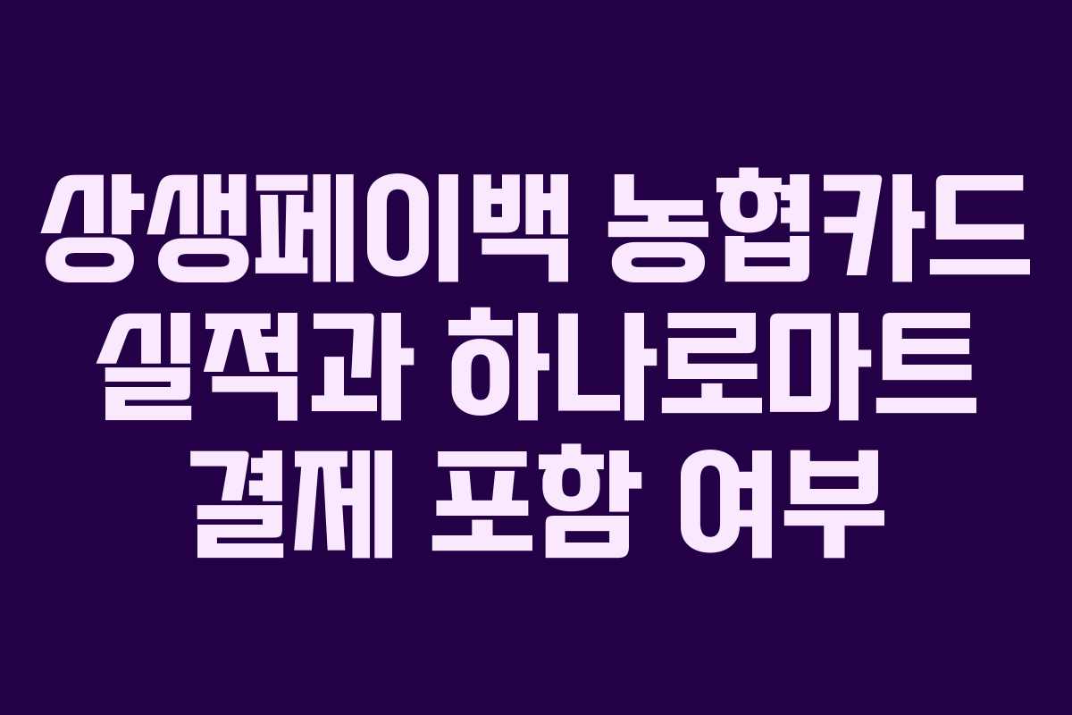 상생페이백 농협카드는 소비자에게 다양한 혜택을 제공하며, 특히 실적에 따른 페이백 시스템이 많은 관심을 받고 있습니다. 이번 글에서는 이 카드의 혜택과 하나로마트에서의 결제 실적 포함 여부를 자세히 알아보겠습니다.