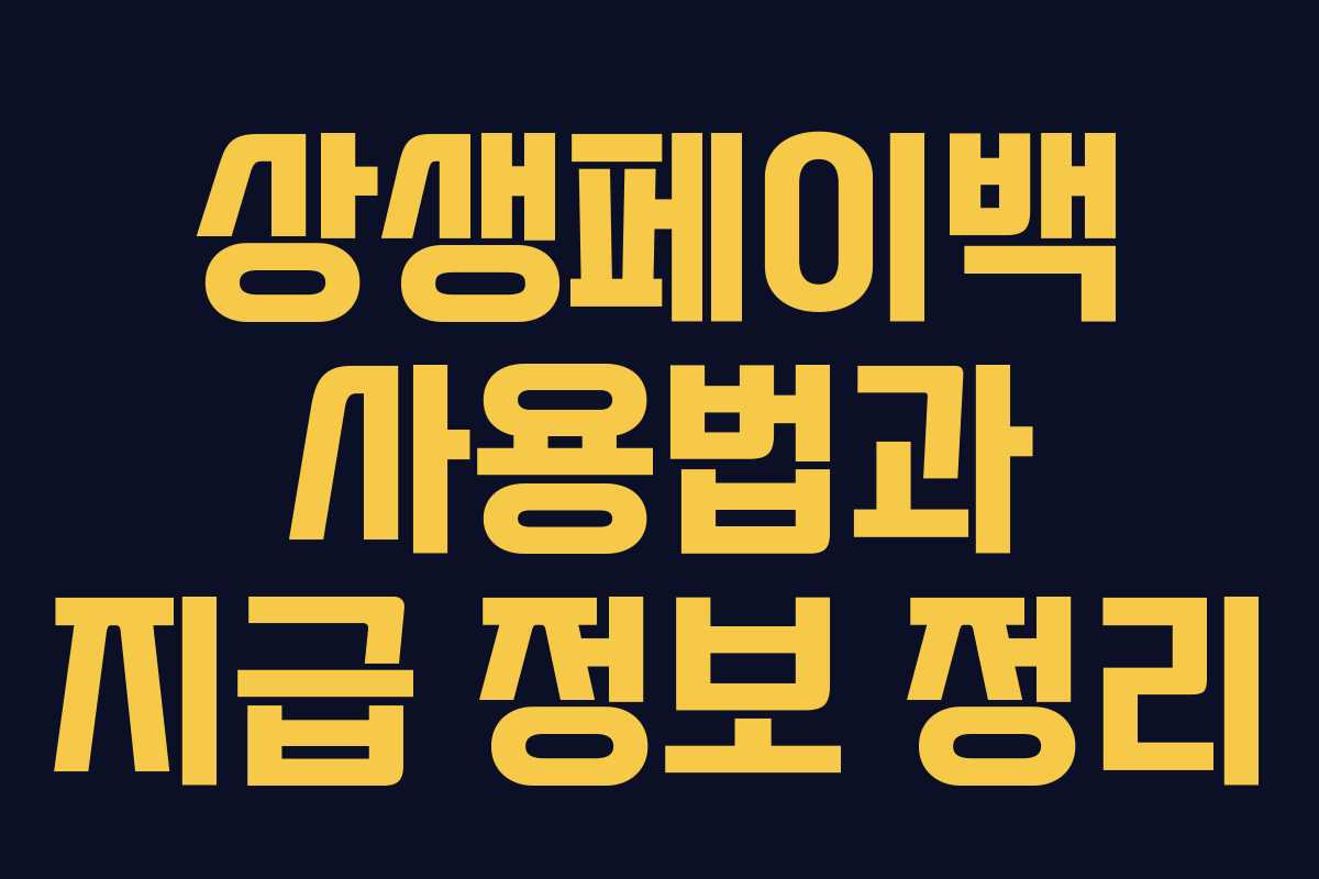 이 정보를 바탕으로 상생페이백을 보다 효과적으로 활용하시기 바랍니다. 필요할 때에 맞춰 전략적으로 사용해 보세요!
