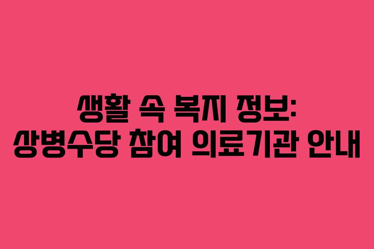 상병수당은 질병으로 인해 일시적으로 일을 할 수 없는 경우 지원받는 제도로, 이를 신청하기 위해서는 특정 의료기관에서 진단서를 발급받아야 합니다. 이번 글에서는 부천시, 포항시, 종로구, 천안시의 참여 의료기관에 대한 정보를 상세히 알아보겠습니다.