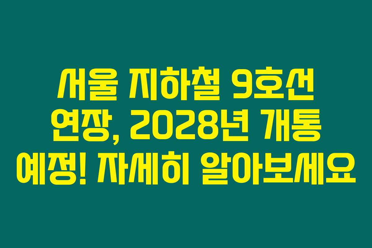 제가 직접 알아본 바로는 서울 지하철 9호선의 4단계 연장 사업이 강동구를 중심으로 진행 중이며, 오는 2028년 개통될 예정이에요. 이 연장은 교통 편의성을 크게 개선할 것으로 기대되며, 주민들뿐만 아니라 서울 전체에도 큰 영향을 미칠 것입니다. 아래를 읽어보시면 더 구체적인 정보와 향후 계획에 대해 알 수 있을 거예요.