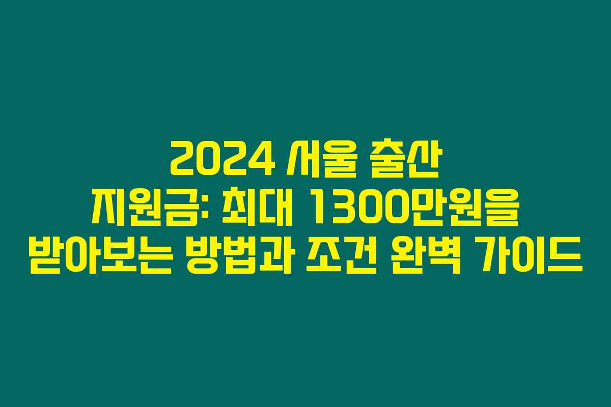 2024 서울 출산 지원금: 최대 1300만원을 받아보는 방법과 조건 완벽 가이드