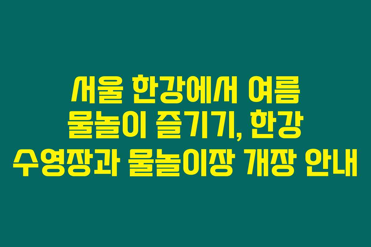 제가 직접 체크해본 바로는, 올해 여름 서울 한강에서 시원한 물놀이를 즐길 수 있는 기회가 다가왔습니다. 한강사업본부에서 오는 6월 24일부터 8월 21일까지 운영하는 한강공원 수영장과 물놀이장 6개소의 개장 소식은 정말 반가운 소식이에요. 아래를 읽어보시면, 다양한 수영장과 물놀이장에 대한 정보를 확인할 수 있습니다.