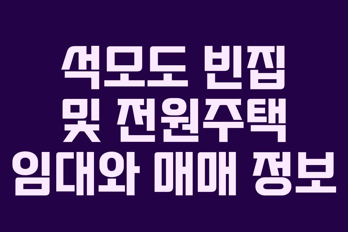 석모도는 아름다운 자연 경관과 함께 조용한 농촌 생활을 원하는 분들에게 인기 있는 지역입니다. 이곳에서 빈집이나 농가주택을 임대하거나 매매하고자 하시는 분들을 위해 유용한 정보를 제공하고자 합니다.