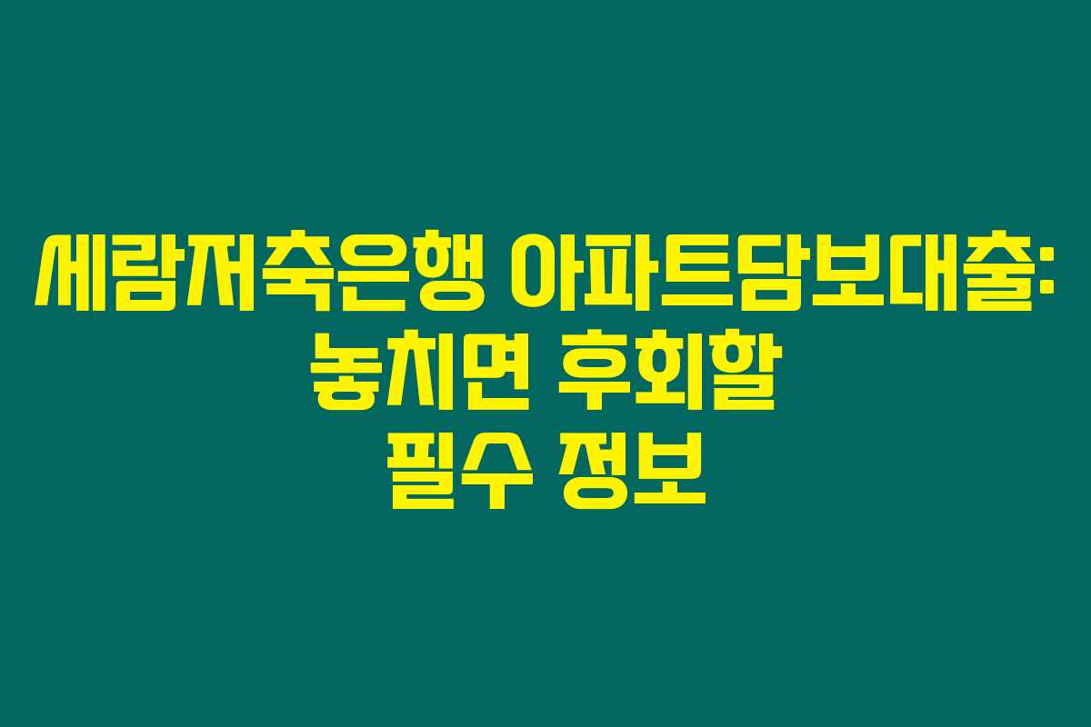 세람저축은행 아파트담보대출: 놓치면 후회할 필수 정보