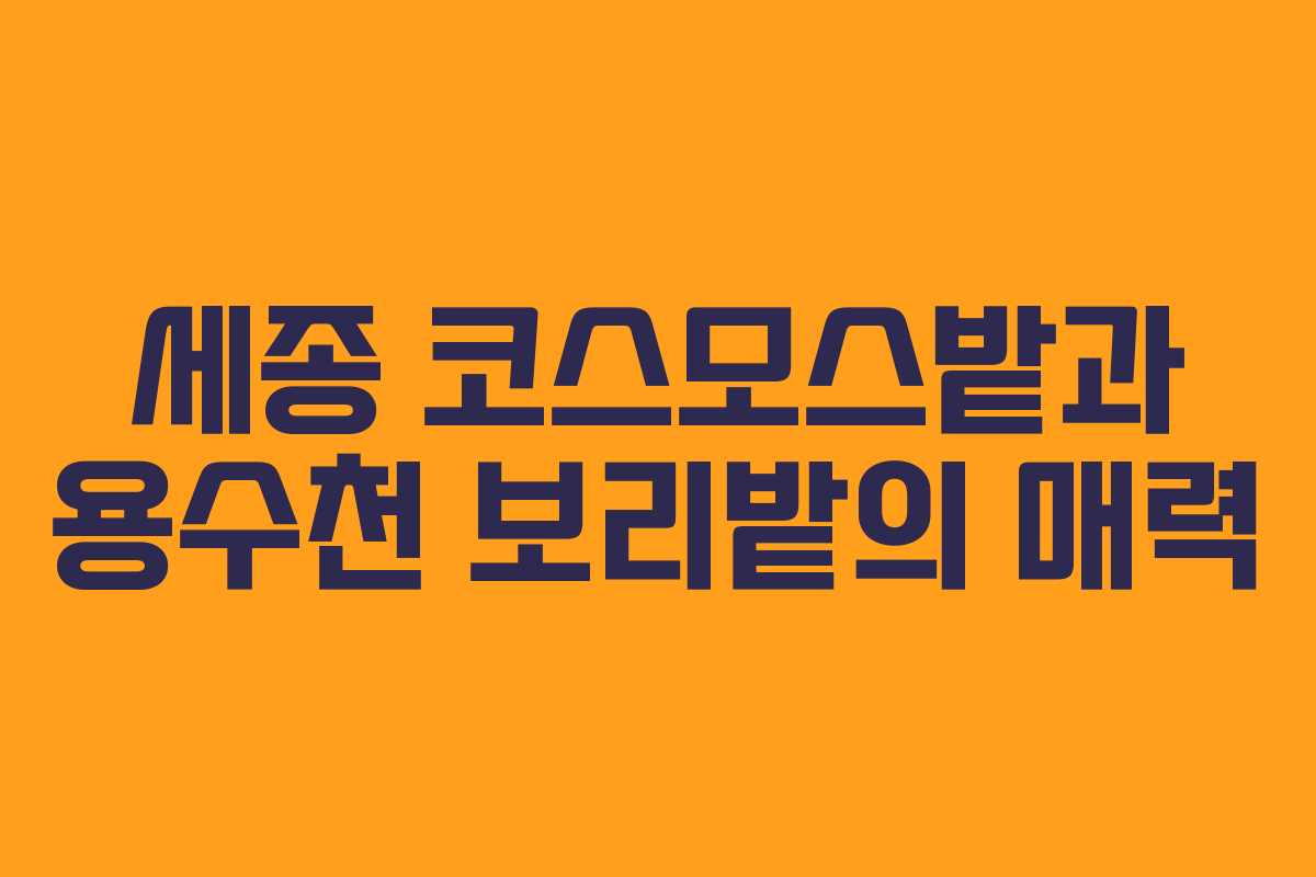 세종 코스모스밭과 용수천 보리밭 사잇길은 근처에 위치한 대형 마트와 가까워 장을 보러 가는 길에 잠시 들르기에도 좋은 곳입니다. 특히 여름철에는 시원한 일출을 즐기며 평화로운 시간을 보낼 수 있습니다.