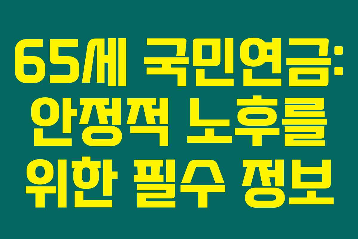 마지막으로, 65세 국민연금을 통해 안정적인 노후를 준비하기 위한 몇 가지 전략을 소개할게요. 제가 추천하는 방법은 다음과 같습니다.