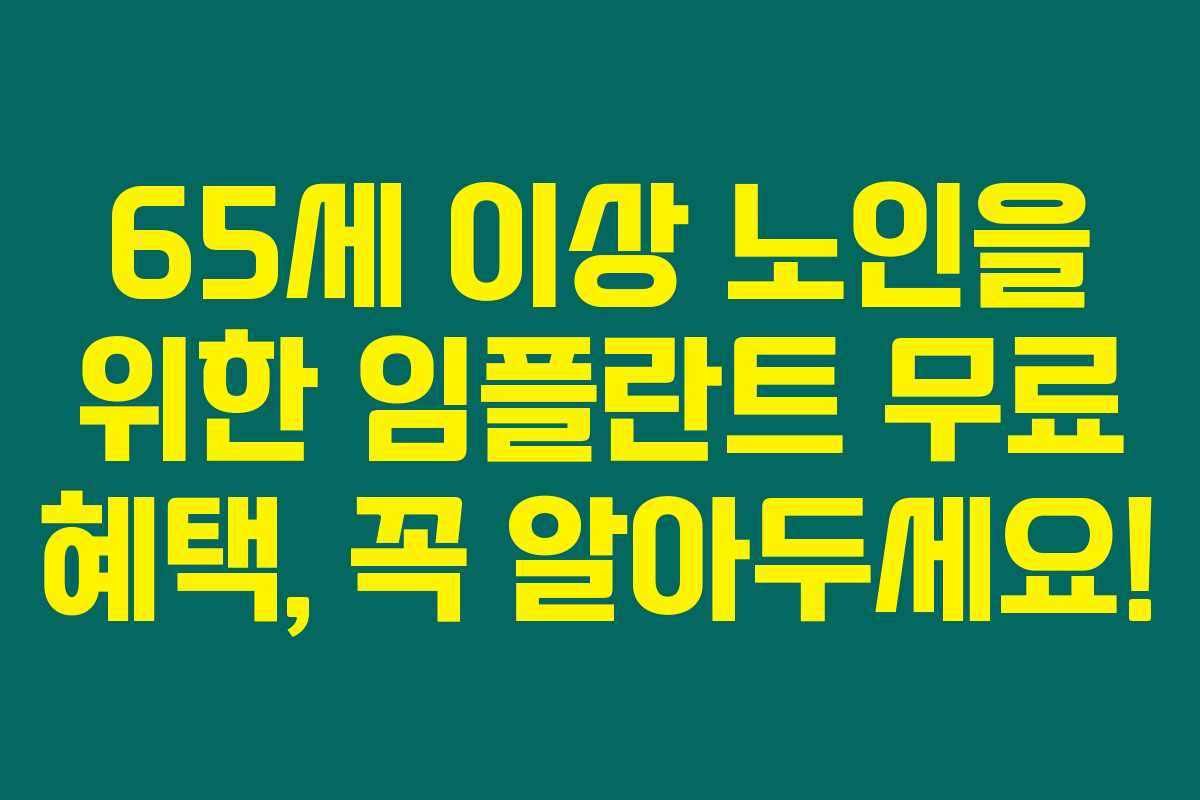 제가 직접 체크해본 바로는, 65세 이상 노인 분들이 임플란트 시술에 대해 고민하는 이유 중 하나는 막대한 비용 때문이에요. 임플란트는 잃어버린 치아를 대체하는 중요한 치료 방법이지만, 그 비용이 부담으로 작용하곤 하죠. 하지만 좋게도, 이렇게 치료받기 어려운 노인 분들을 위해 건강보험과 국가에서 지원하는 혜택이 있다는 사실을 알고 계셨나요? 아래를 읽어보시면 65세 이상 노인에게 제공되는 임플란트 무료 혜택을 자세히 정리한 내용을 확인하실 수 있습니다.