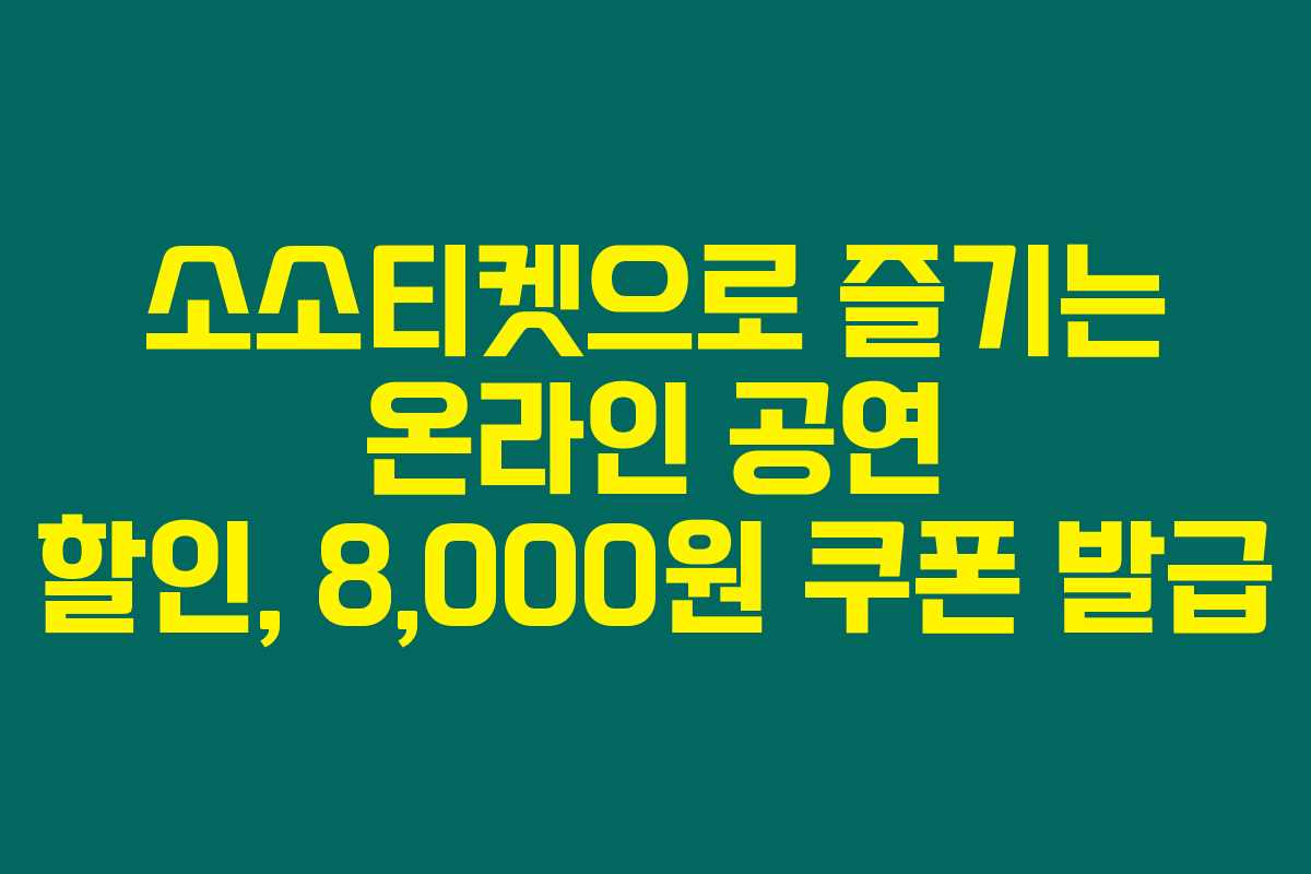 여러분, 집에서도 손쉽게 즐길 수 있는 온라인 공연! 하지만 비용이 부담스럽다면 어떻게 할까요? 소소티켓을 통해 인당 8,000원 할인으로 알찬 문화생활을 누려보세요. 아래를 읽어보시면 소소티켓 혜택과 예매 방법에 대해 자세히 알아볼 수 있습니다.