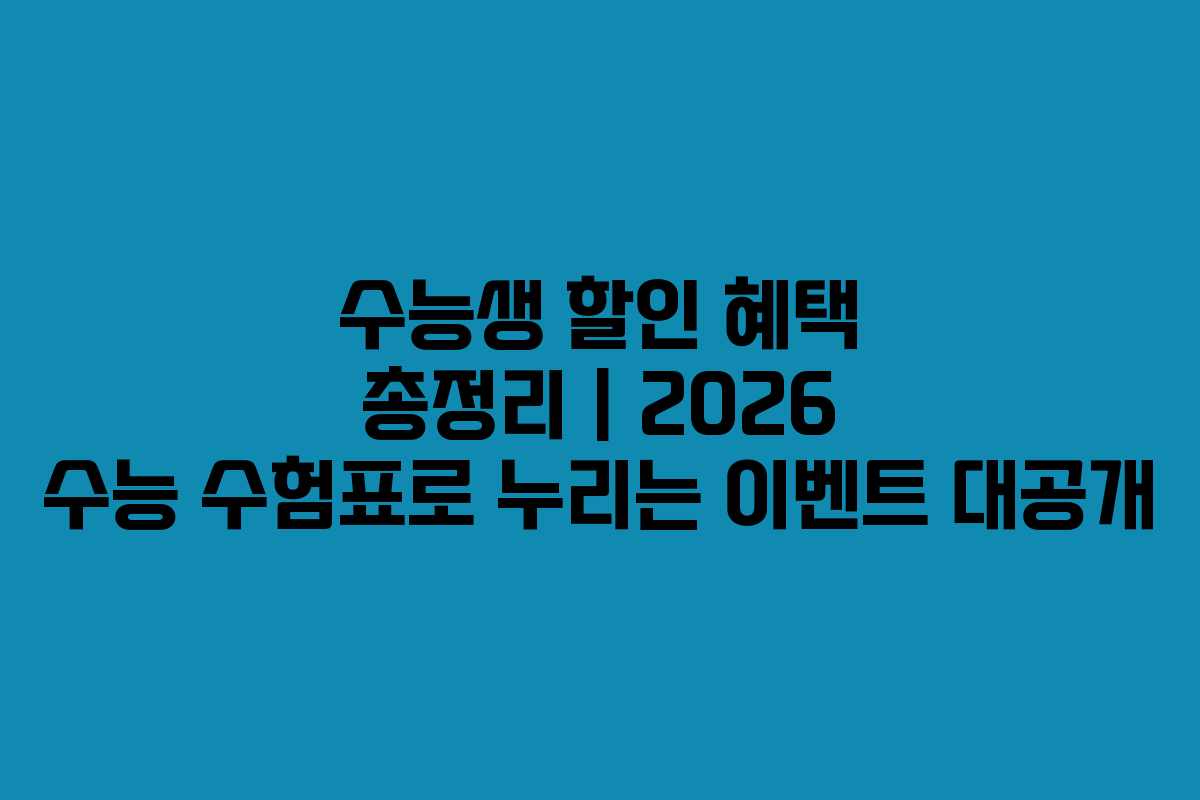 2026학년도 수능이 끝난 후, 수험생들에게 특별한 할인 혜택이 제공됩니다. 수험표 한 장으로 다양한 이벤트와 할인 혜택을 누릴 수 있는 기회입니다. 아래에서는 수험생이 이용할 수 있는 할인 혜택을 정리해보았습니다.