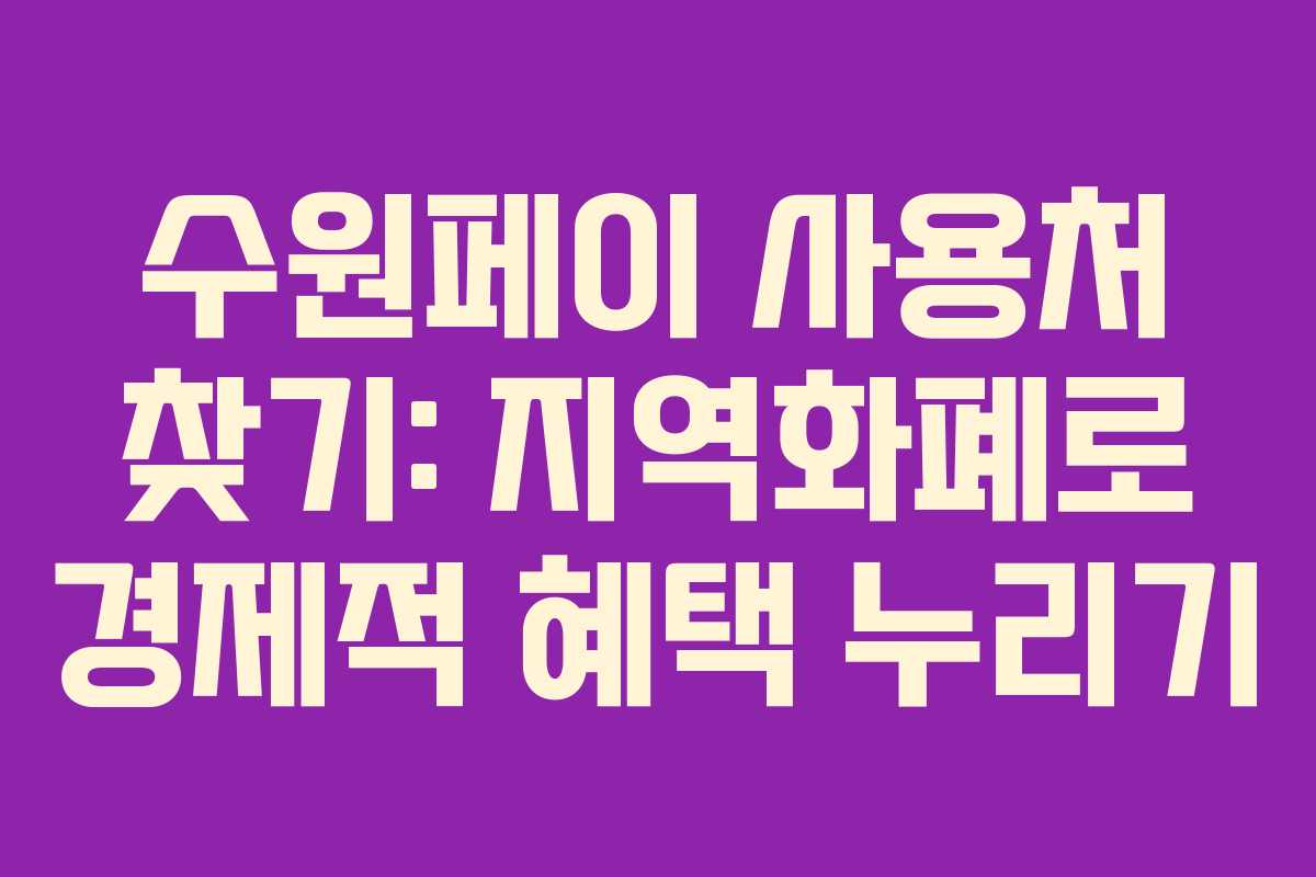 수원페이는 특정 가맹점에서만 사용 가능하므로, 미리 사용처를 확인하고 방문하는 것이 좋습니다.