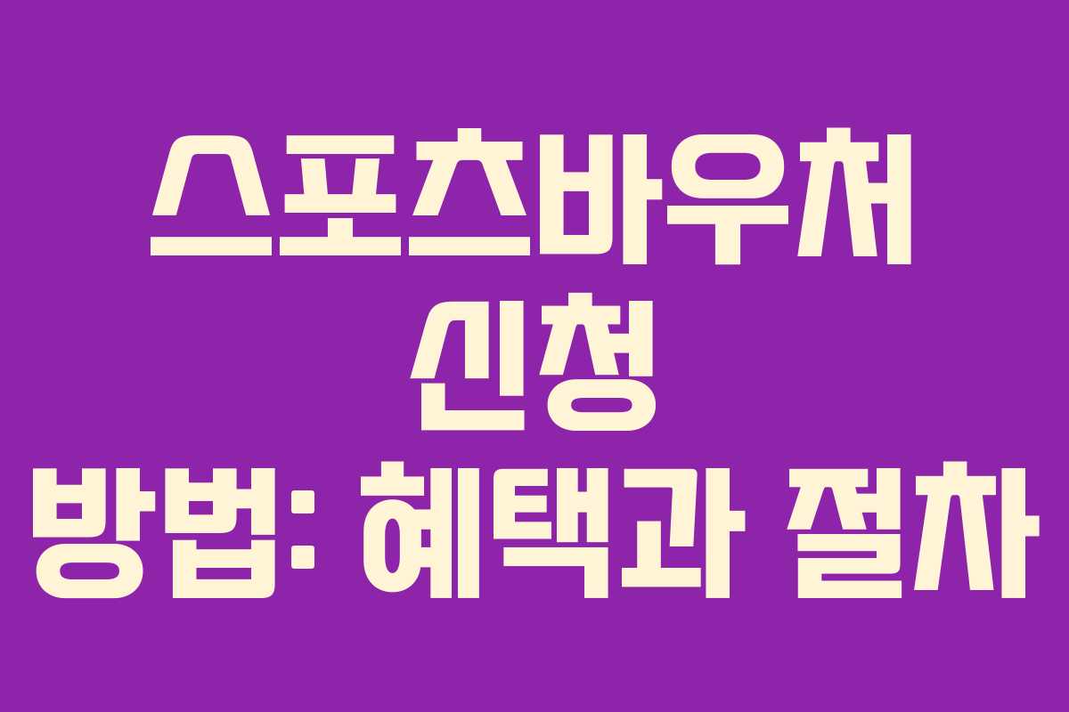 스포츠바우처 신청은 온라인과 오프라인 모두 가능합니다. 간단한 절차를 통해 신청할 수 있으며, 필요한 서류를 준비해야 합니다.