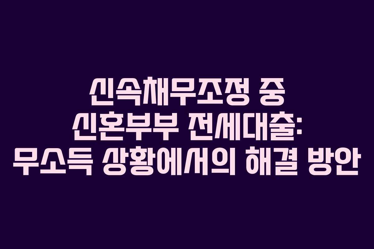 신속채무조정 중 신혼부부 전세대출: 무소득 상황에서의 해결 방안